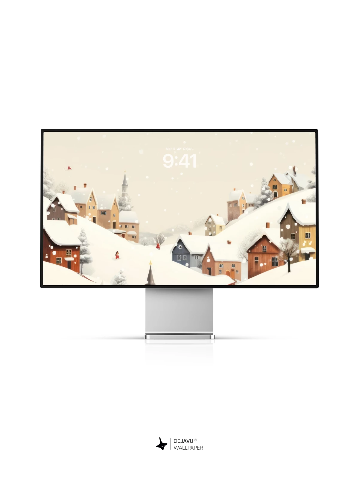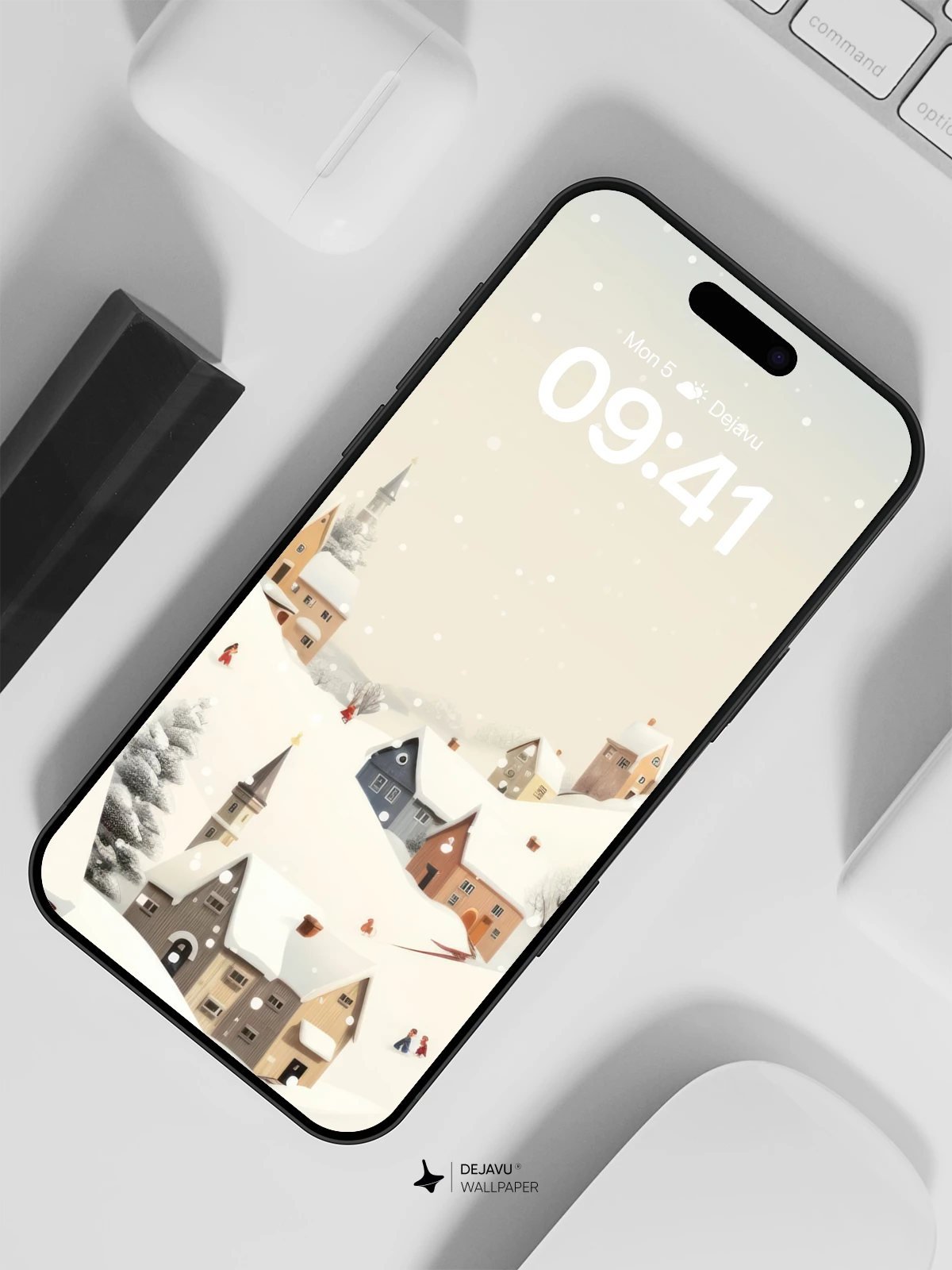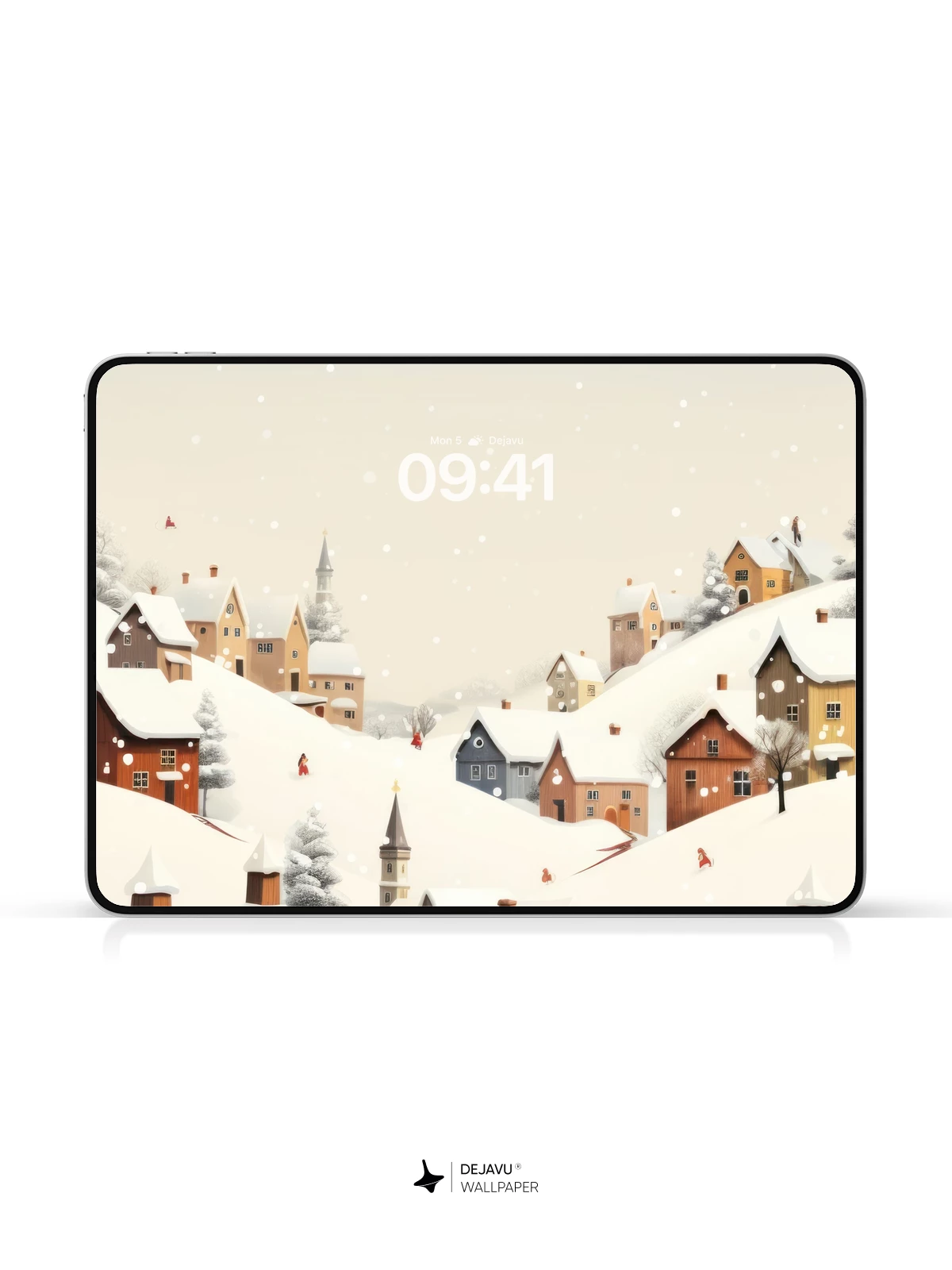 This enchanting 8K wallpaper captures a peaceful winter village nestled in rolling hills, blanketed in fresh snow. With warm-toned wooden houses, church spires, and tiny figures walking through the landscape, it evokes a sense of quiet joy and timeless holiday charm. Ideal for iPhone, Android, or tablet screens, the soft pastel sky and falling snowflakes create a soothing, animated-like effect. Inspired by classic European alpine artistry, this design blends realism with gentle stylization to bring warmth and wonder to any device.