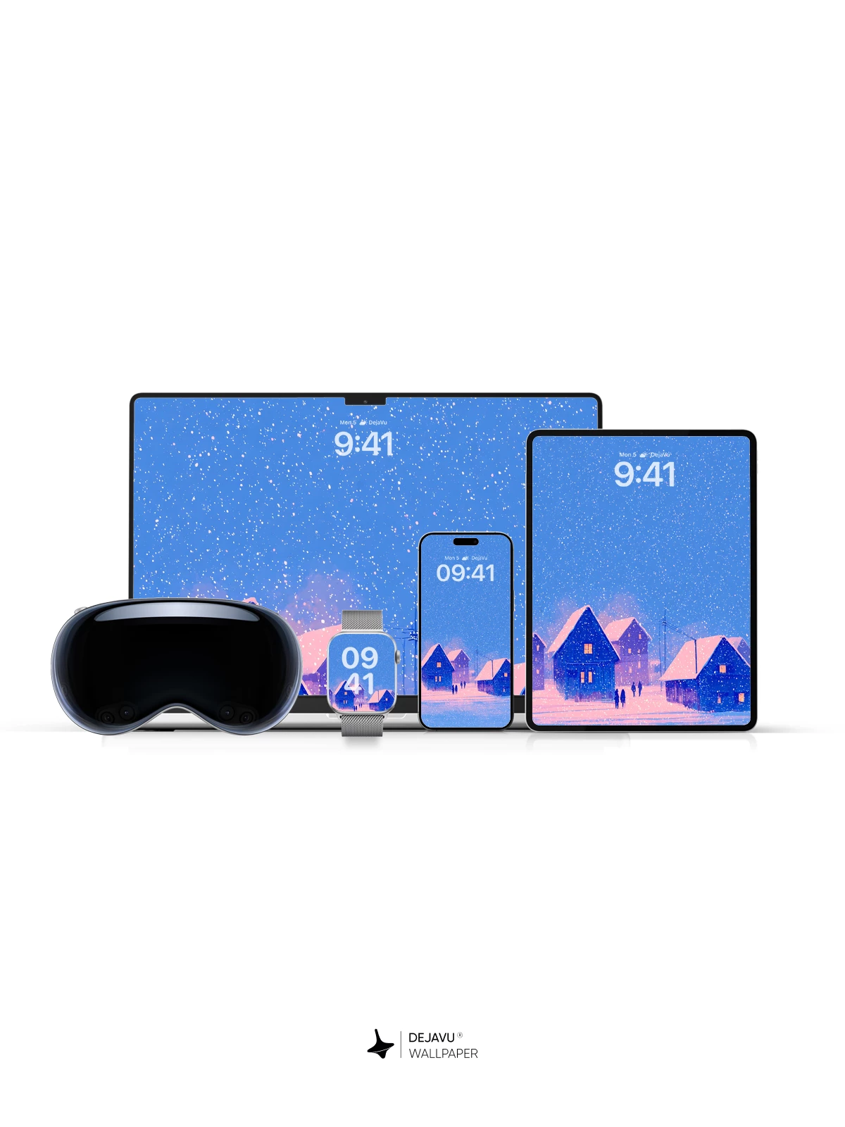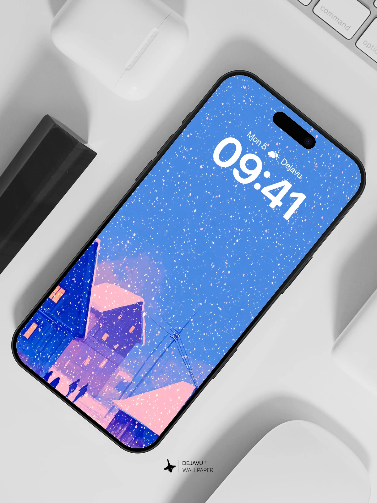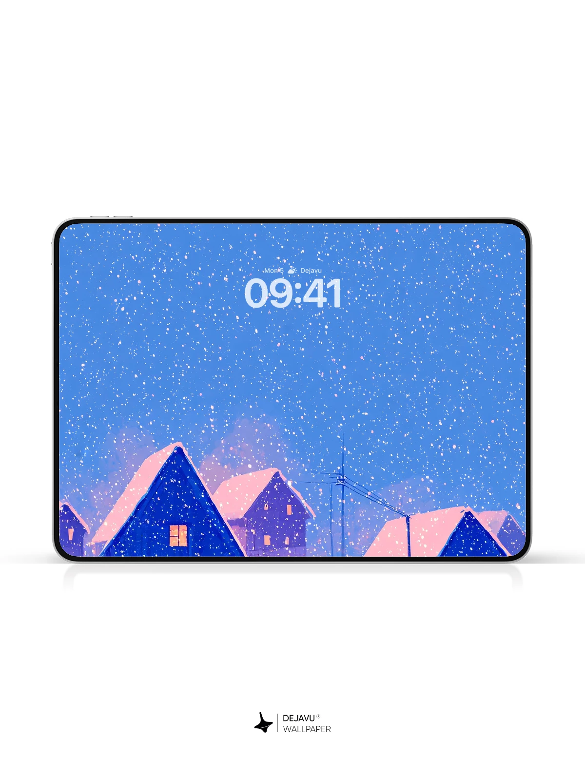 This enchanting winter scene captures a quiet village blanketed in snow, where soft pink and blue hues blend beneath a falling snowstorm. The glowing windows of wooden houses cast a cozy warmth against the cool night sky, evoking feelings of peace and nostalgia. Inspired by poetic winter landscapes, this 8K wallpaper is ideal for iPhone, Android, and tablets, bringing a touch of magical stillness to your mobile screen.