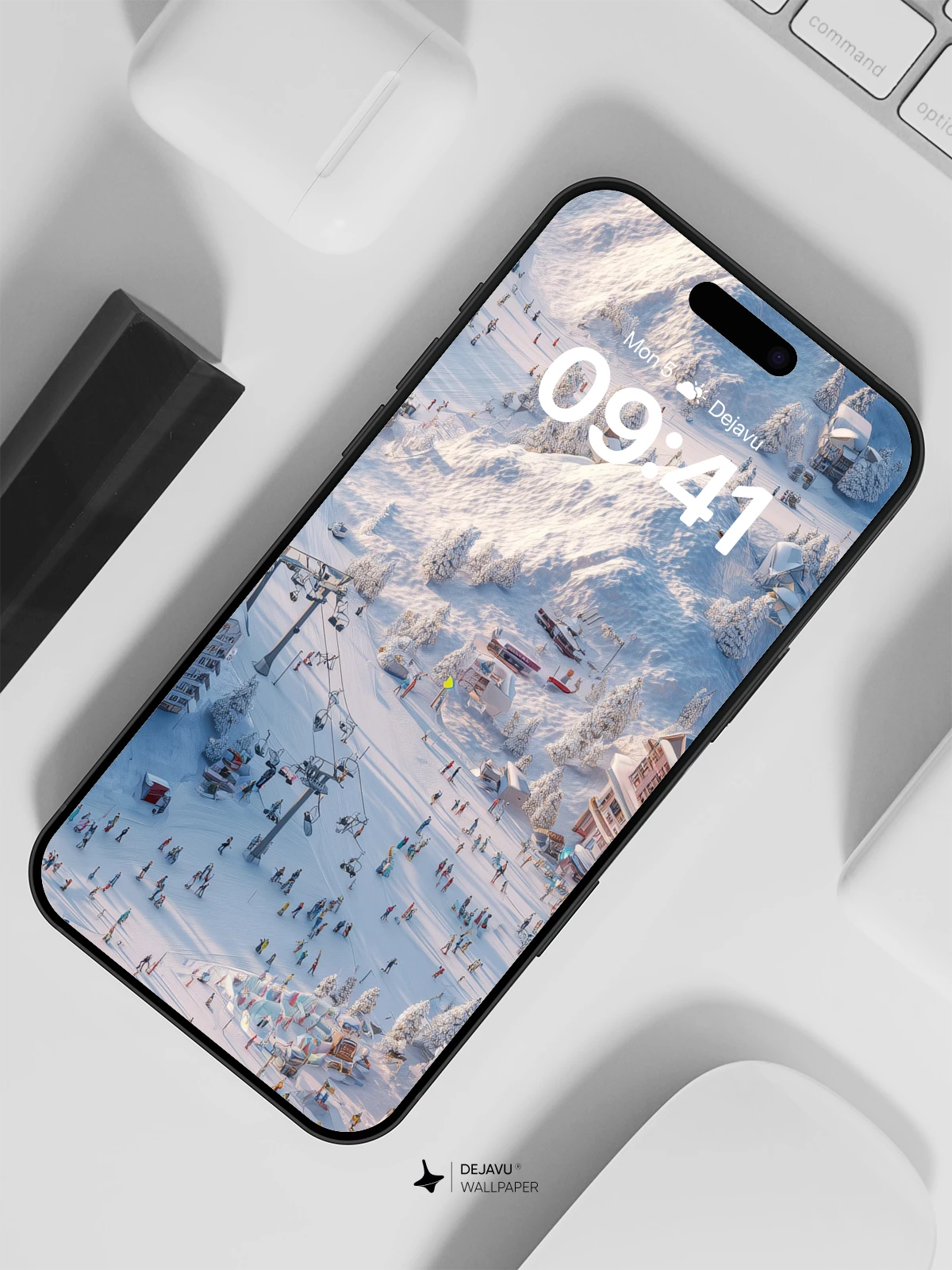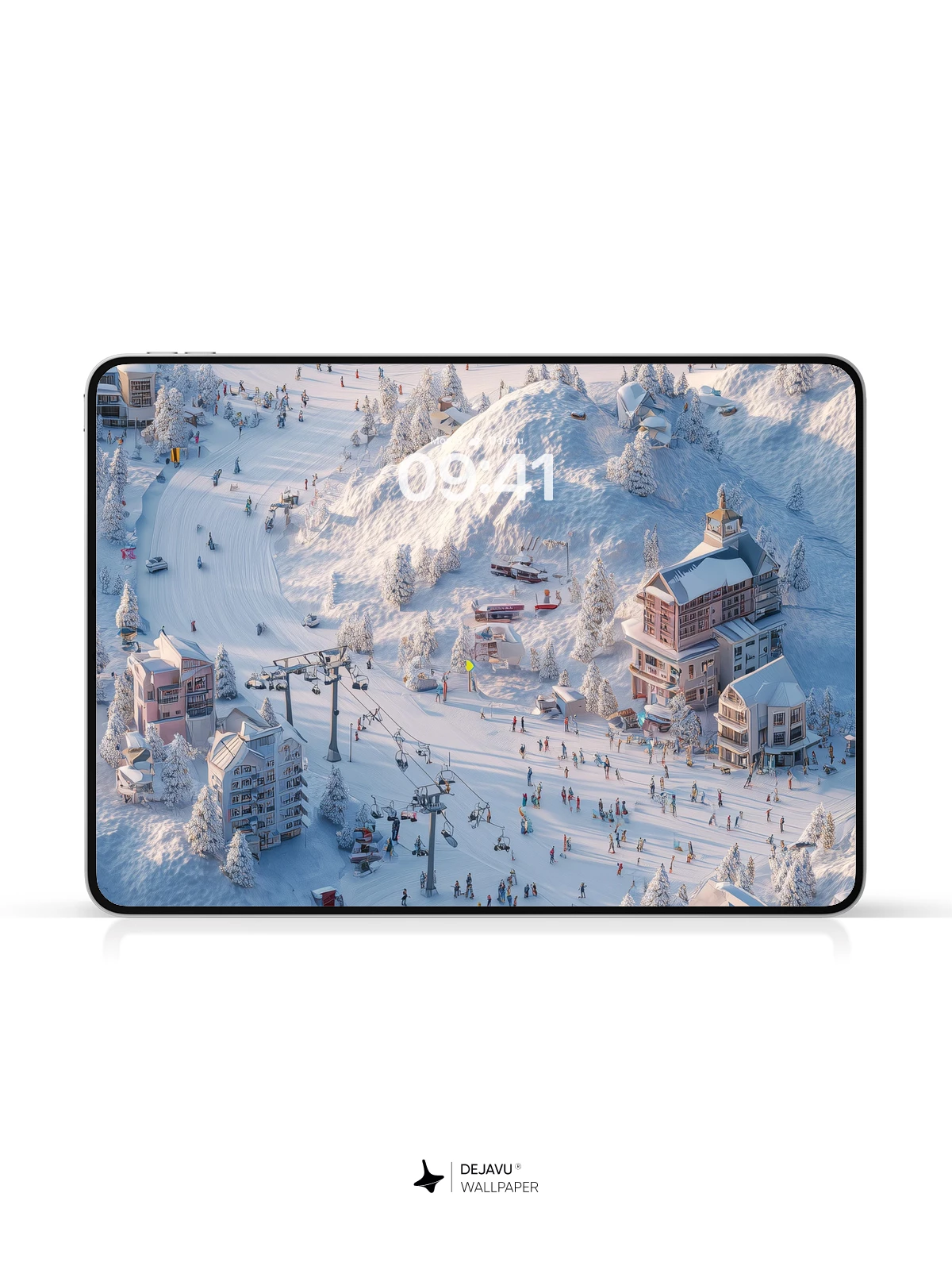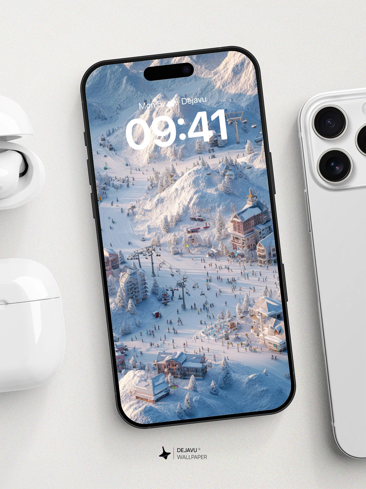 This stunning 8K wallpaper captures a serene winter wonderland, where pristine snow blankets a lively ski resort nestled among majestic mountains. Elegant chalets, vibrant skiers, and towering evergreens create a magical, festive atmosphere ideal for iPhone, Android, or tablet screens. The crisp lighting and detailed landscape evoke a sense of peaceful adventure, making it a perfect digital escape for any winter lover.