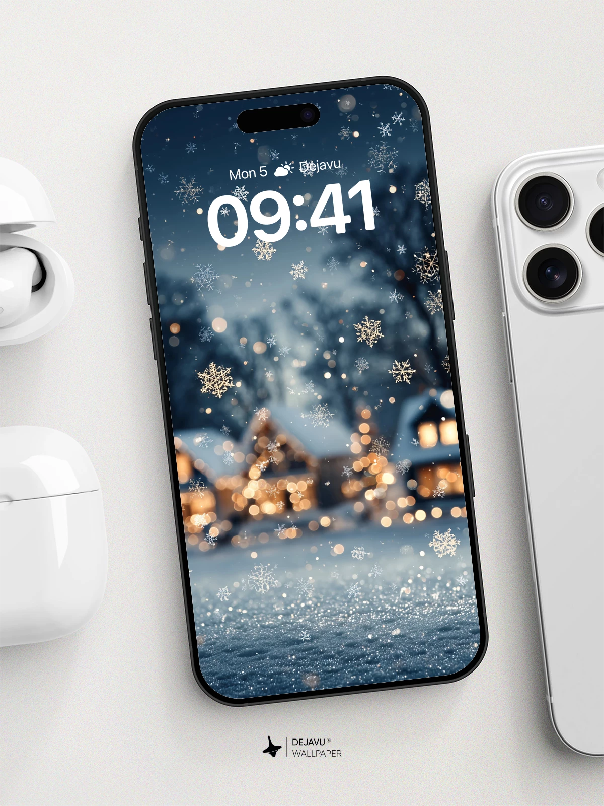 Snowflakes drift gently through a serene winter night, illuminating a village of warmly lit cabins nestled in the snow. The dreamlike atmosphere evokes peace and nostalgia, perfect for a festive or calming mobile background. With crisp 8K resolution and delicate light effects, this wallpaper enhances any iPhone, Android, or tablet screen, turning everyday moments into quiet escapes. Ideal for those who cherish nature’s stillness and seasonal magic.