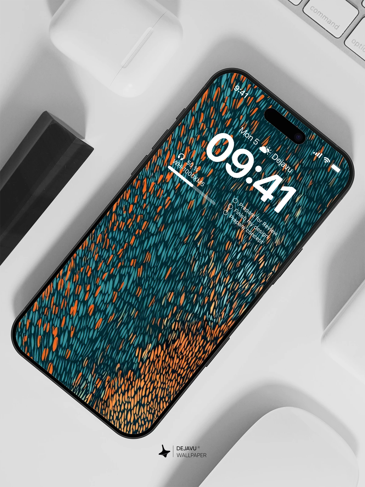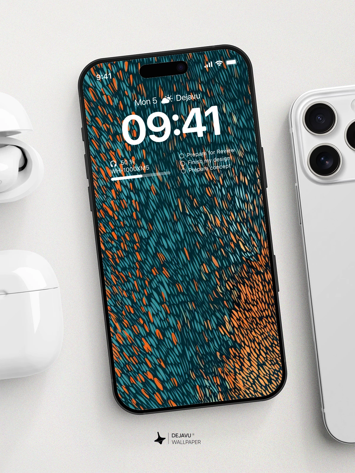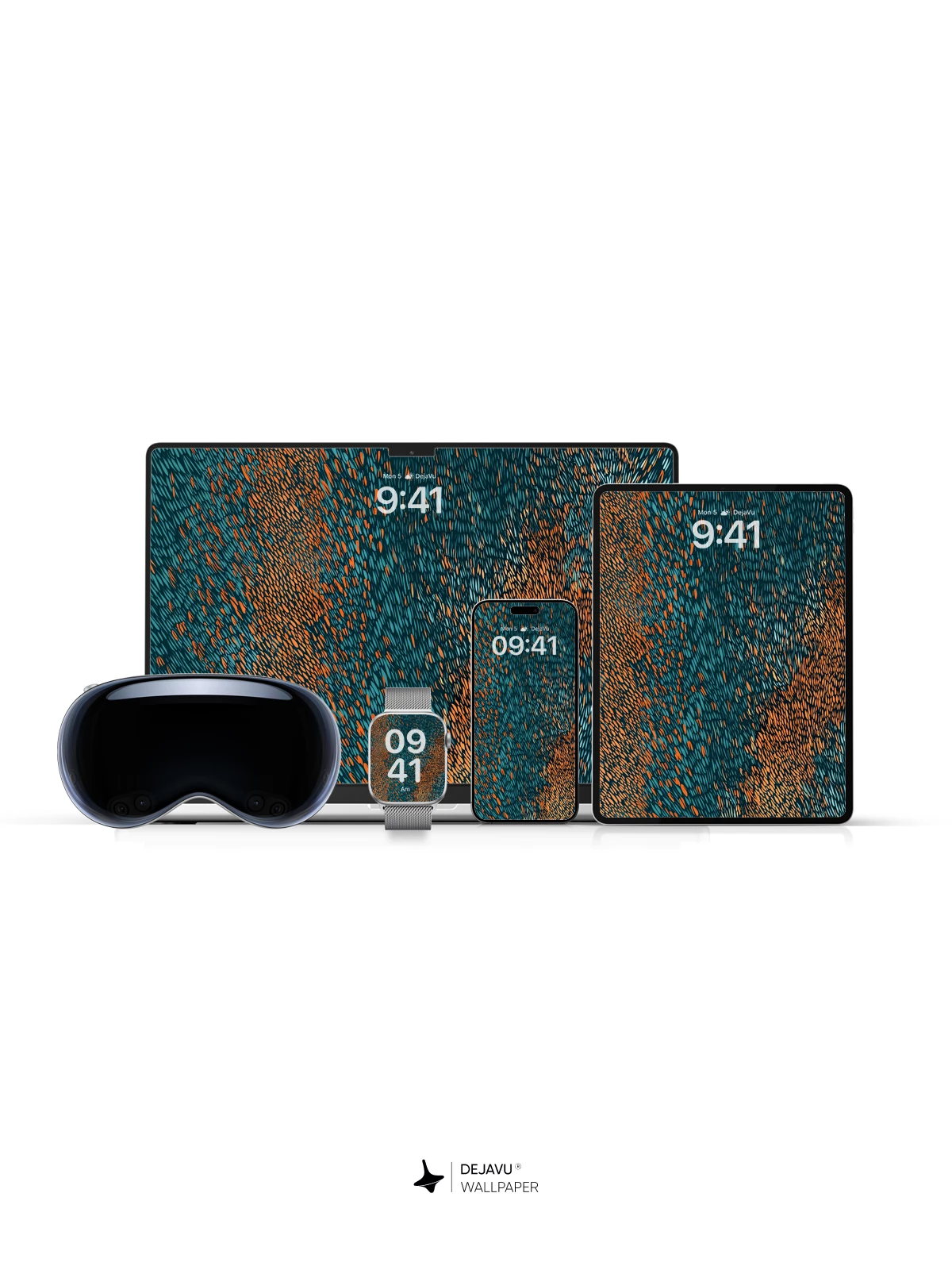 This design mimics a tightly woven textile, layering cool teal threads against warm copper accents. The resulting texture adds depth to your iPhone, Android, or tablet screen without distracting from the interface.